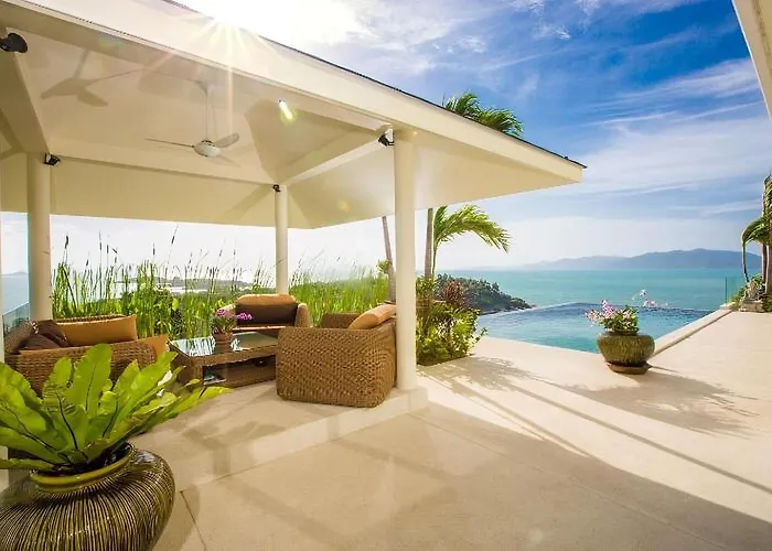 Lora 3Br Golden Sunset View Villa ligt op ongeveer 2 km van het Choeng Mon-strand en nodigt gasten uit om te ontspannen op een patio. De villa, gelegen op circa 10 km van de luchthaven Ko Samui, biedt autoverhuur voor meer entertainment.